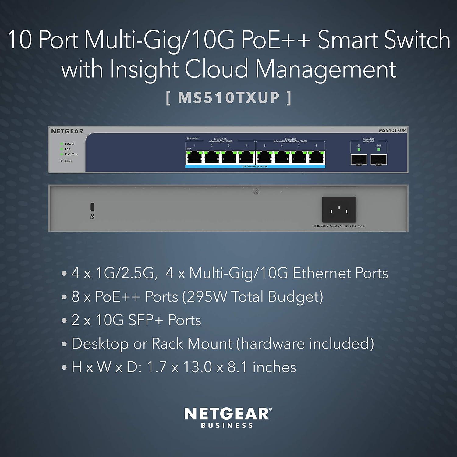 NETGEAR 10-Port PoE Gigabit Ethernet Smart Switch (GS110TP) – Managed, with 8 x PoE+ @ 55W, 2 x 1G SFP, Optional Insight Cloud Management, Desktop or Wall Mount, and Limited Lifetime Protection(08 Port | 190W)
