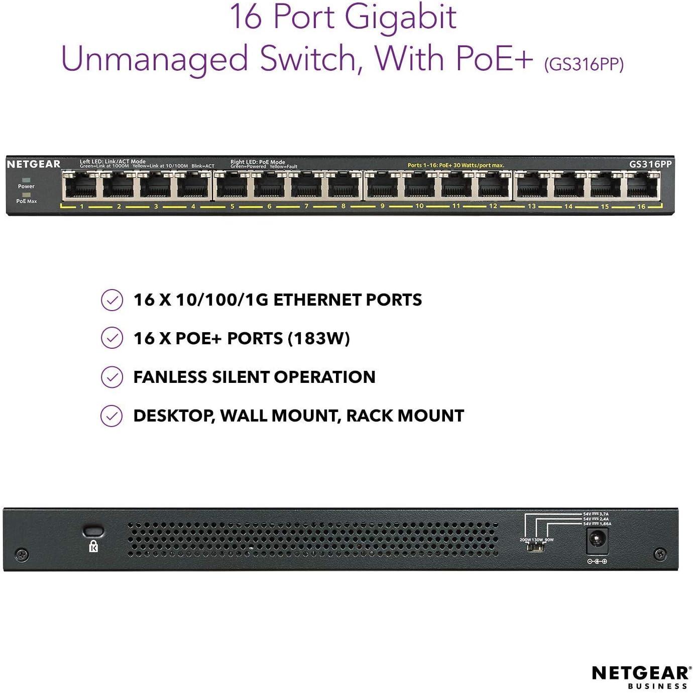 POWER-OVER-ETHERNET: 16 PoE+ ports with 115W total power budget to power wireless AP, IP Cameras, IP Phones and much more