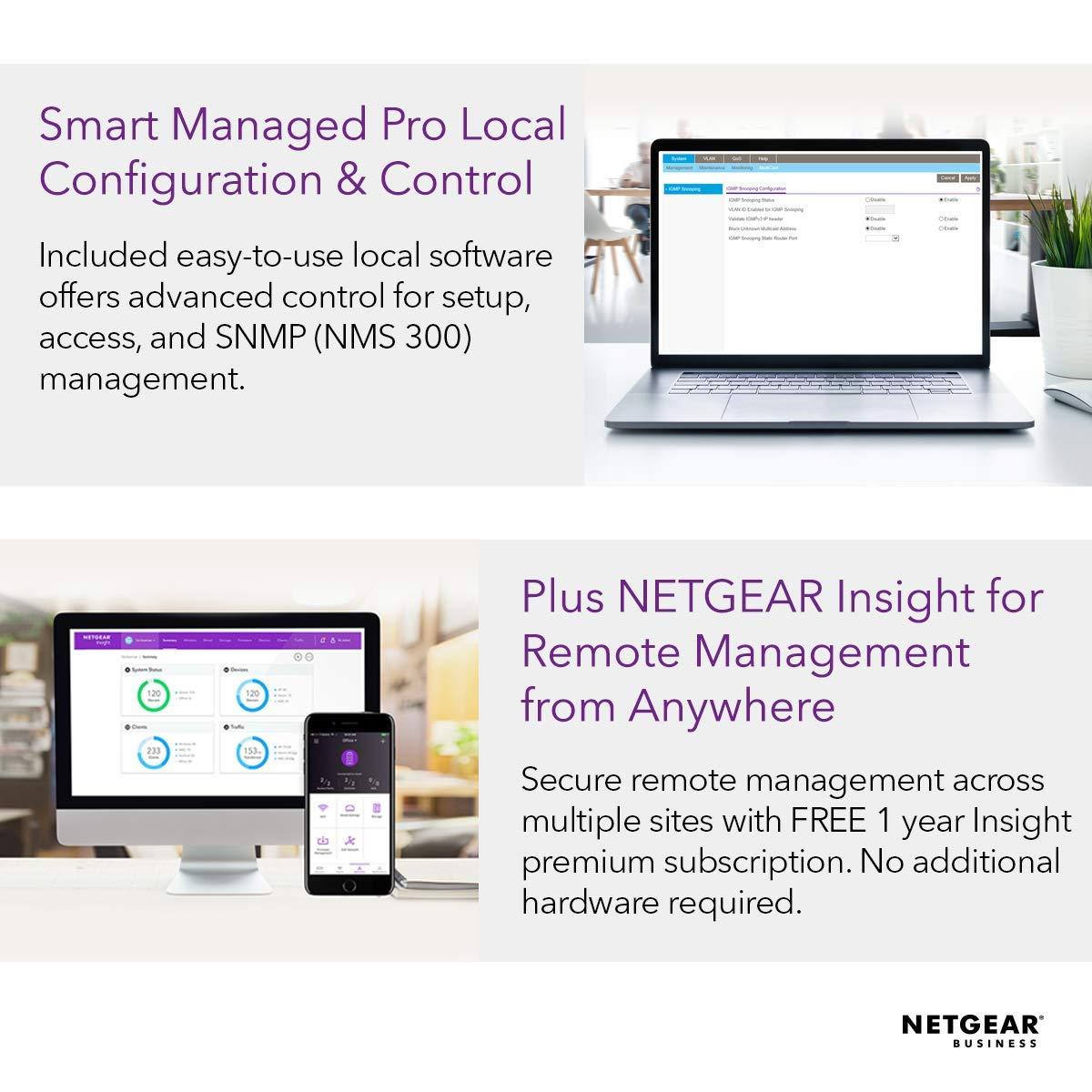 NETGEAR 18-Port PoE Gigabit Ethernet Smart Switch (GS716TPP) - Managed with Insight Cloud Management, 16 x PoE+ @ 300W, 2 x 1G SFP, Desktop/Rackmount, and ProSAFE Lifetime Protection (Renewed)(28 port | 24xPoE+ 190W | 4xSFP)