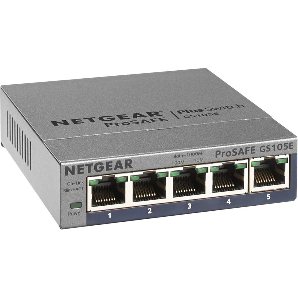 The NETGEAR GS105Ev2 Smart Managed Plus Desktop Switch features 5-Port Gigabit Ethernet, ProSAFE Lifetime Protection and more.