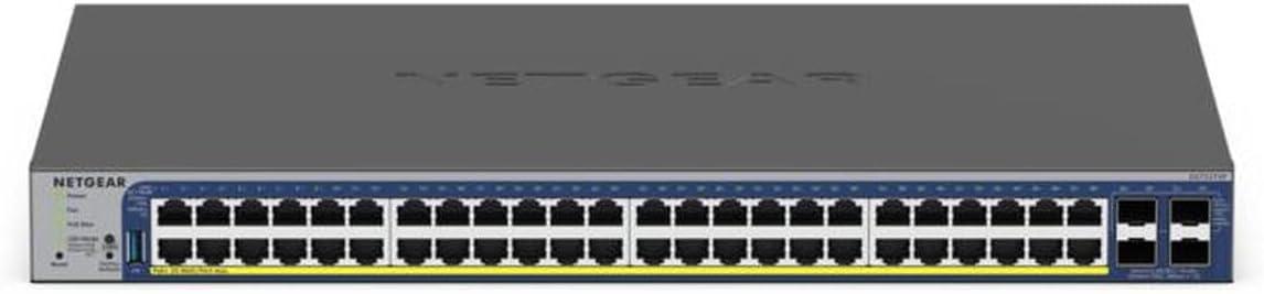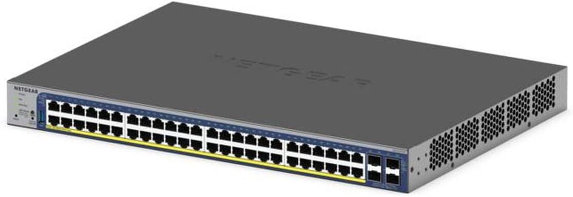 The NETGEAR GS752TP Smart Managed Pro Power over Ethernet (PoE) Switch is designed for desktop or rackmount and features 48-Ports of Gigabit Ethernet, 48 x PoE+ ports with a 380 watt budget, 4 x 1G SFP ports, ProSAFE Lifetime Protection and more.