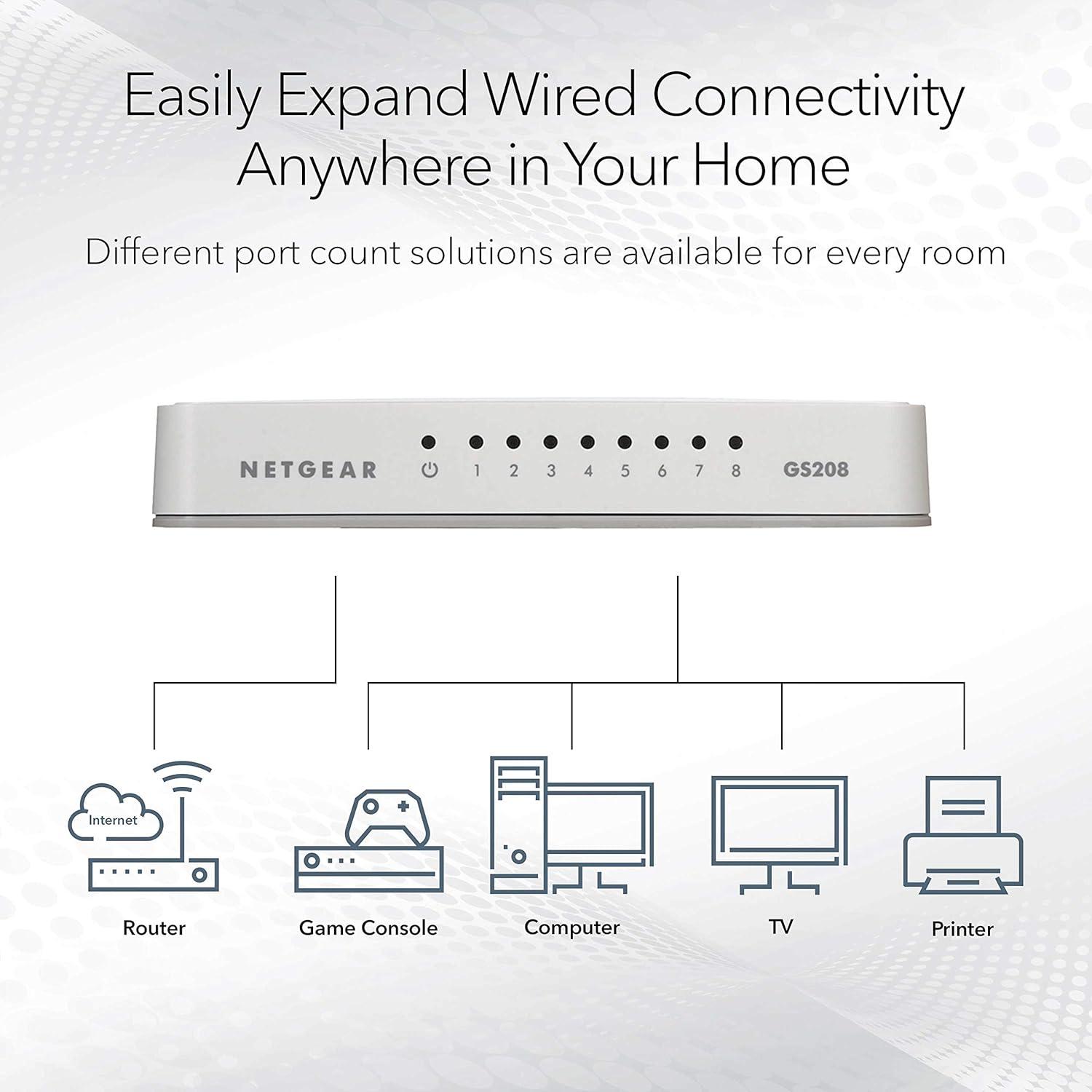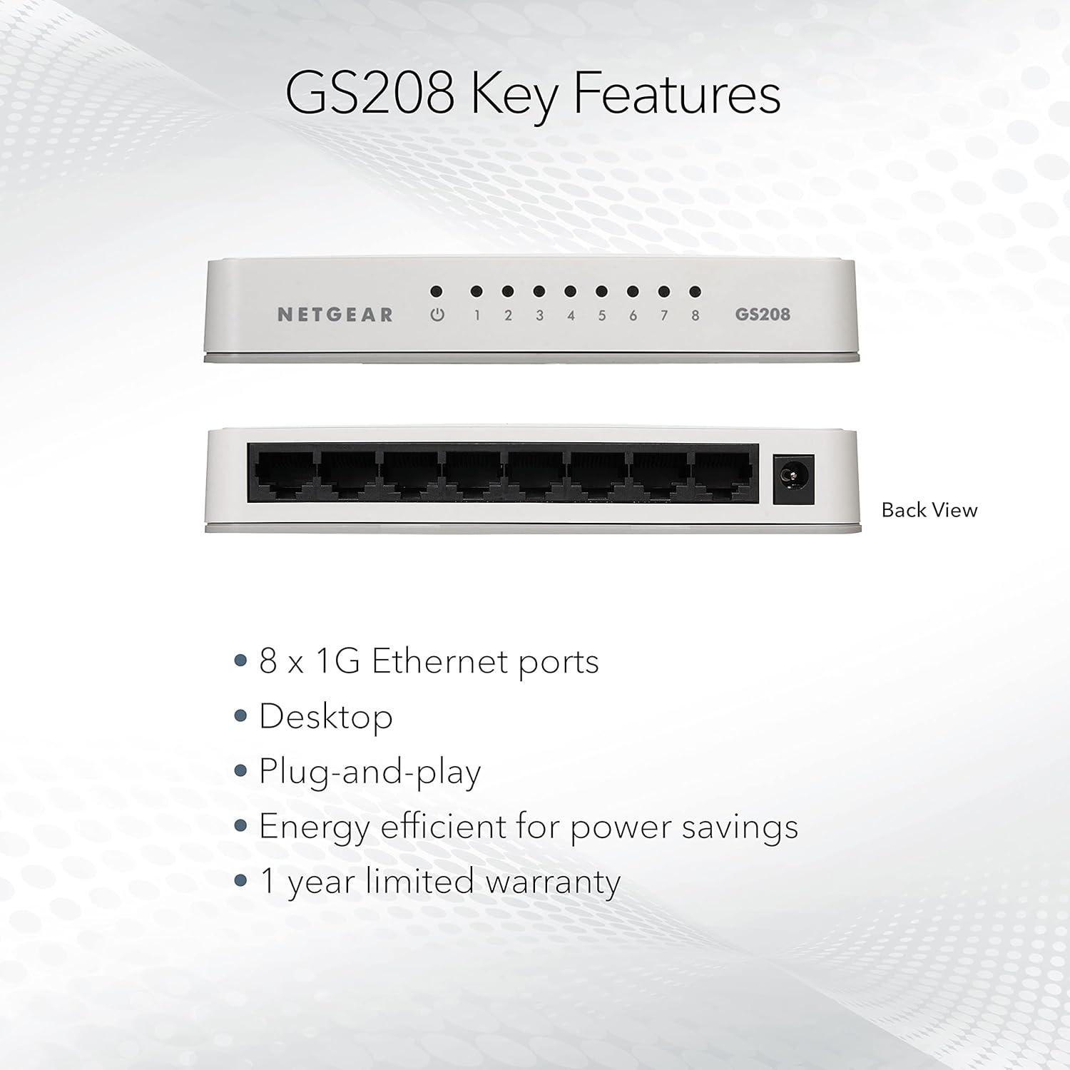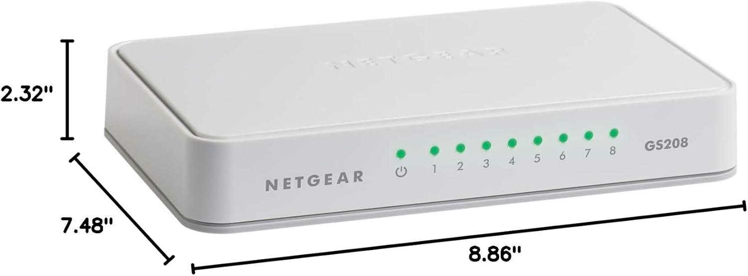 NETGEAR 8-Port Gigabit Ethernet Unmanaged Switch (GS208) - Desktop, Ethernet Splitter, Silent Operation, Plug-and-Play