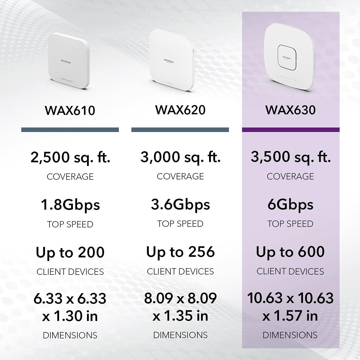 imageNETGEAR Cloud Managed Wireless Access Point WAX630EP  WiFi 6E TriBand AXE7800 Speed  Mesh  80211ax  MUMIMO  Insight Remote Management  PoE  Includes Power AdapterAX3600  WiFi 6  PoE