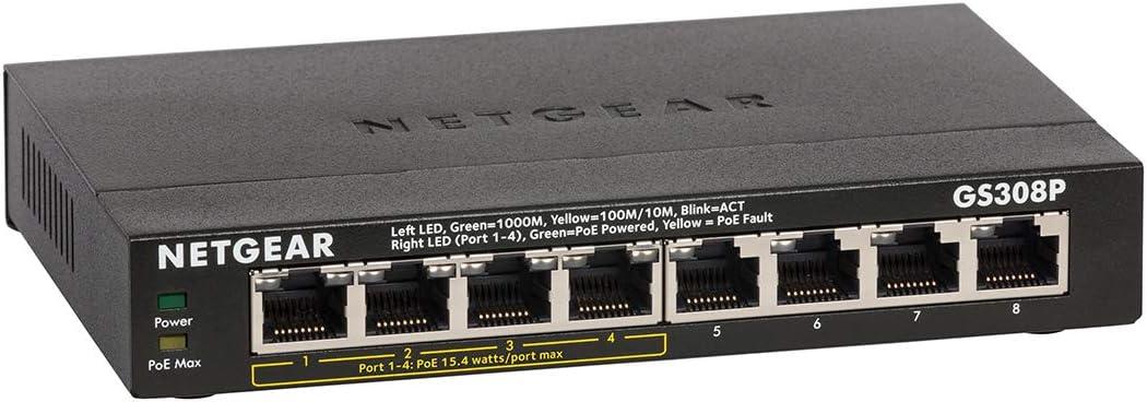 NETGEAR GS308P-100NAS 8-Port Gigabit Ethernet Unmanaged Switch, 4xPoE