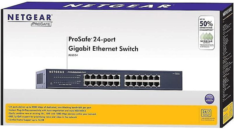 Number of Ports: 24 Gigabit Ether Port: Yes Interfaces/Ports: 24 x RJ-45 10/100/1000Base-T LAN Input Voltage: 110 V AC 220 V AC Input Voltage Range: 100 V AC to 240 V AC Form Factor: Rack-mountable Dimensions: 1.70″ Height x 13″ Width x 8.20″ Depth Weight: 5.30 lb Package Contents: 24-port Gigabit Ether Switch JGS524 Power adapter Installation guide Rack-mount kit Warranty/Support information card