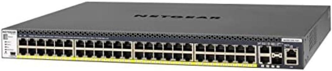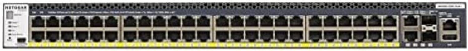 The M4300-52G-PoE+ provides 48 Gigabit PoE+ ports with 2 10GBASE-T and 2 10GBASE-X SFP+ uplink connectivity