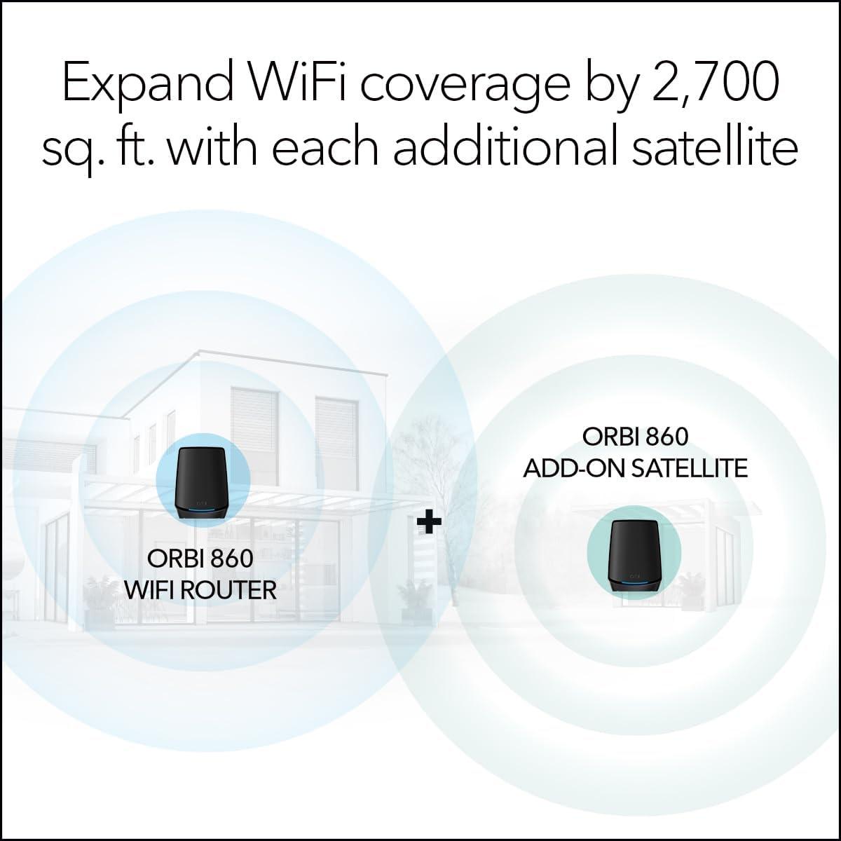 NETGEAR Orbi Tri-Band WiFi 6 Mesh Add-on Satellite (RBS860B) - Works with Orbi RBK863SB - Adds Coverage up to 2,700 sq. ft. - AX6000 (6Gbps) - Black