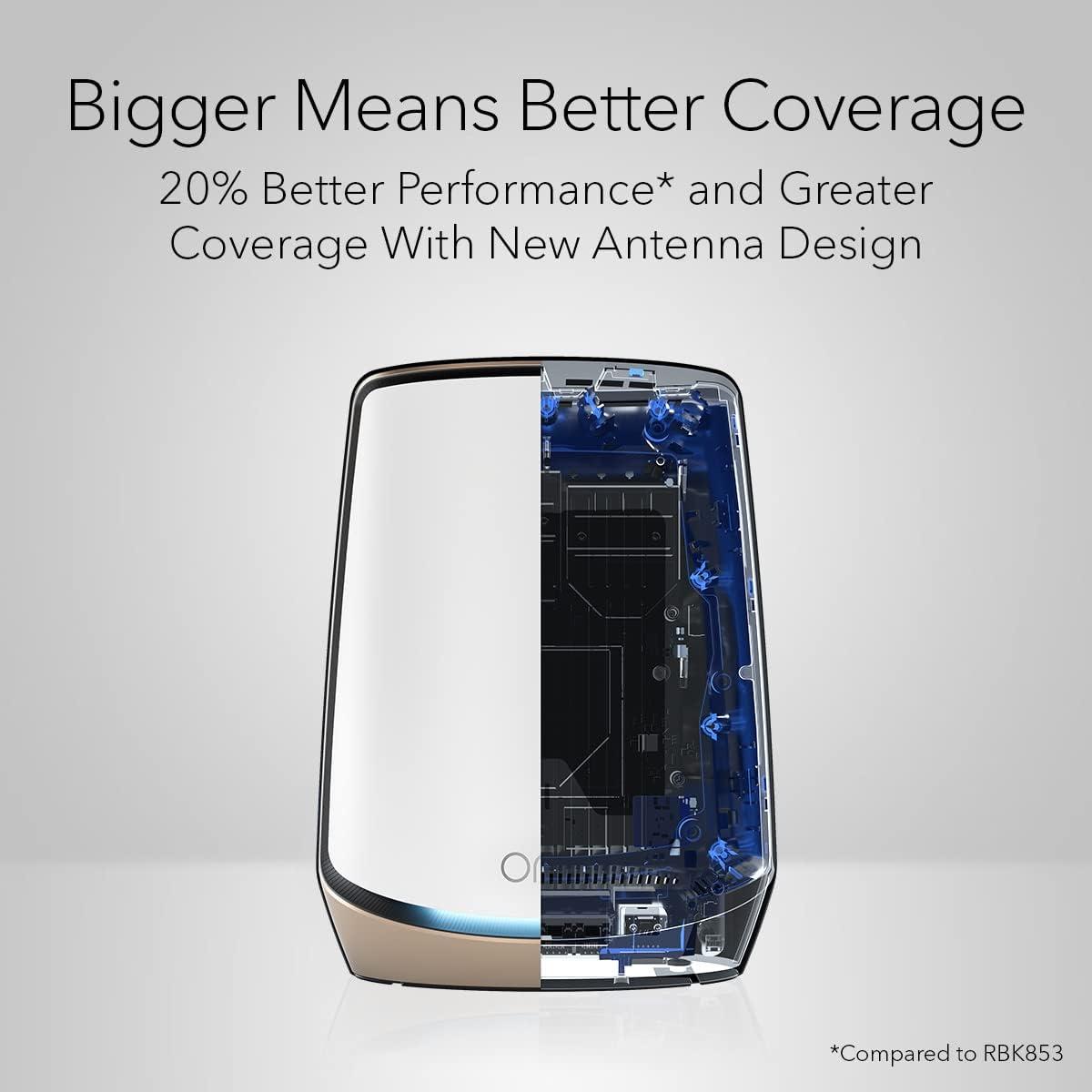 Elevate your internet experience to high-performance, whole-home WiFi with NETGEAR® Orbi™ RBK862S. This Tri-BandMesh WiFi System sends ultrafast speeds up to 6Gbps across up to 5,400 square feet—even to your front and backyards. Upgraded, patented antenna design boosts your WiFi coverage even further than previous generations. The new 10-Gig internet port enables multi-gig connections up to an incredible 10Gbps. Count on max speeds for up to 100 devicesat once with NETGEAR’s patented Tri-Band and dedicated backhaul WiFi. NETGEAR Armor™ software, with a 1-year subscriptionincluded, protects your WiFi with a shield of security across your connected devices.