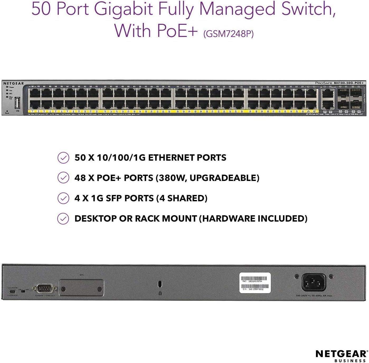 POWER-OVER-ETHERNET: 48 PoE+ ports with 380W total power budget, and includes NETGEAR FlexPoE making it expandable to 1440W (w/separately purchased power supply module)